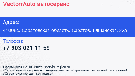 VectorrAuto, автосервис по адресу 410086, Саратовская область, Саратов, Елшанская, 22а в дальнейшем Организация, размещена в следующих категориях:
