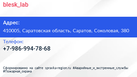 blesk_lab по адресу 410005, Саратовская область, Саратов, Соколовая, 380 в дальнейшем Организация, размещена в следующих категориях:
