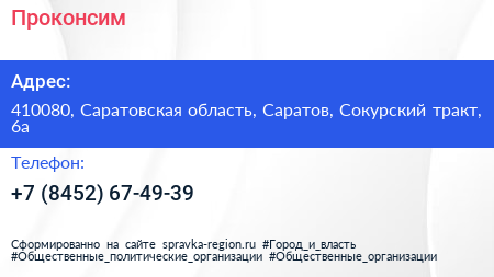 Проконсим по адресу 410080, Саратовская область, Саратов, Сокурский тракт, 6а в дальнейшем Организация, размещена в следующих категориях:
