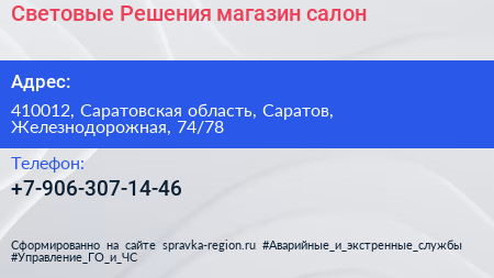 Световые Решения, магазин-салон по адресу 410012, Саратовская область, Саратов, Железнодорожная, 74/78 в дальнейшем Организация, размещена в следующих категориях: