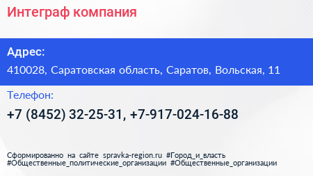 Интеграф, компания по адресу 410028, Саратовская область, Саратов, Вольская, 11 в дальнейшем Организация, размещена в следующих категориях: