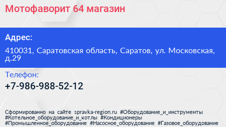 Мотофаворит 64, магазин по адресу 410031, Саратовская область, Саратов, ул. Московская, д.29 в дальнейшем Организация, размещена в следующих категориях: