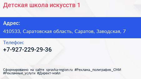 Детская школа искусств №1 по адресу 410533, Саратовская область, Саратов, Заводская, 7 в дальнейшем Организация, размещена в следующих категориях: