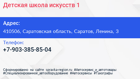 Детская школа искусств №1 по адресу 410506, Саратовская область, Саратов, Ленина, 3 в дальнейшем Организация, размещена в следующих категориях: