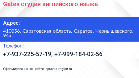 Gates, студия английского языка по адресу 410056, Саратовская область, Саратов, Чернышевского, 94а в дальнейшем Организация, размещена в следующих категориях: