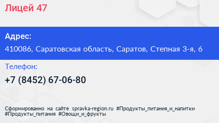 Лицей №47 по адресу 410086, Саратовская область, Саратов, Степная 3-я, 6 в дальнейшем Организация, размещена в следующих категориях: