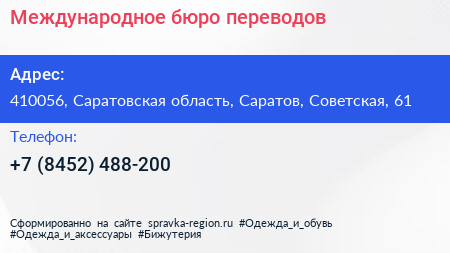 Международное бюро переводов по адресу 410056, Саратовская область, Саратов, Советская, 61 в дальнейшем Организация, размещена в следующих категориях: