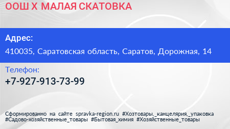 ООШ Х. МАЛАЯ СКАТОВКА по адресу 410035, Саратовская область, Саратов, Дорожная, 14 в дальнейшем Организация, размещена в следующих категориях: