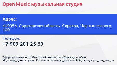 Open Music, музыкальная студия по адресу 410056, Саратовская область, Саратов, Чернышевского, 100 в дальнейшем Организация, размещена в следующих категориях: