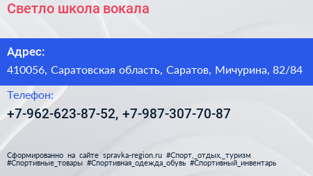Светло, школа вокала по адресу 410056, Саратовская область, Саратов, Мичурина, 82/84 в дальнейшем Организация, размещена в следующих категориях: