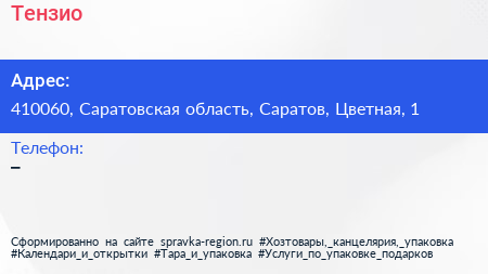 Тензио по адресу 410060, Саратовская область, Саратов, Цветная, 1 в дальнейшем Организация, размещена в следующих категориях:
