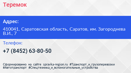 Теремок по адресу 410041, Саратовская область, Саратов, им. Загороднева В.И., 7 в дальнейшем Организация, размещена в следующих категориях: