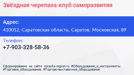 Звёздная черепаха, клуб саморазвития по адресу 410012, Саратовская область, Саратов, Московская, 89 в дальнейшем Организация, размещена в следующих категориях: