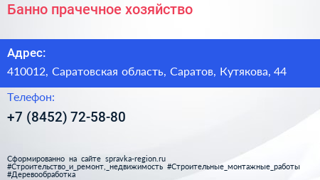 Банно-прачечное хозяйство по адресу 410012, Саратовская область, Саратов, Кутякова, 44 в дальнейшем Организация, размещена в следующих категориях:
