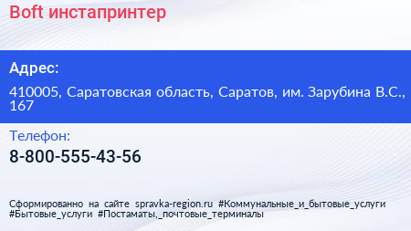 Boft, инстапринтер по адресу 410005, Саратовская область, Саратов, им. Зарубина В.С., 167 в дальнейшем Организация, размещена в следующих категориях: