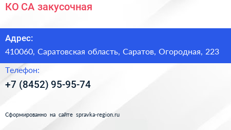 КО-СА, закусочная по адресу 410060, Саратовская область, Саратов, Огородная, 223 в дальнейшем Организация, размещена в следующих категориях: