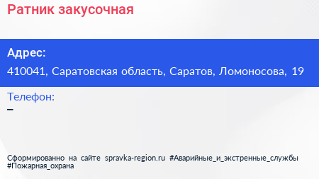 Ратник, закусочная по адресу 410041, Саратовская область, Саратов, Ломоносова, 19 в дальнейшем Организация, размещена в следующих категориях: