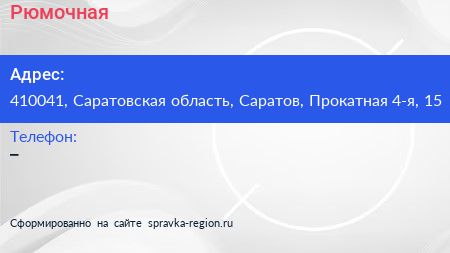 Рюмочная по адресу 410041, Саратовская область, Саратов, Прокатная 4-я, 15 в дальнейшем Организация, размещена в следующих категориях: