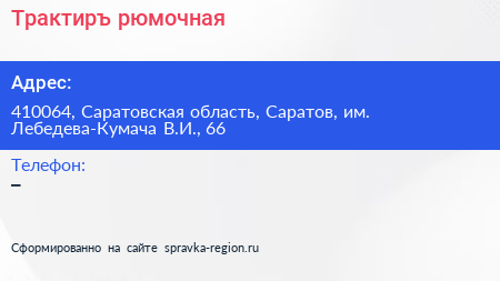 Трактиръ, рюмочная по адресу 410064, Саратовская область, Саратов, им. Лебедева-Кумача В.И., 66 в дальнейшем Организация, размещена в следующих категориях: