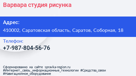 Варвара, студия рисунка по адресу 410002, Саратовская область, Саратов, Соборная, 18 в дальнейшем Организация, размещена в следующих категориях: