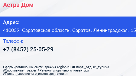Астра Дом по адресу 410039, Саратовская область, Саратов, Ленинградская, 15 в дальнейшем Организация, размещена в следующих категориях: