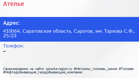 Ателье по адресу 410064, Саратовская область, Саратов, им. Тархова С.Ф., 25/23 в дальнейшем Организация, размещена в следующих категориях:
