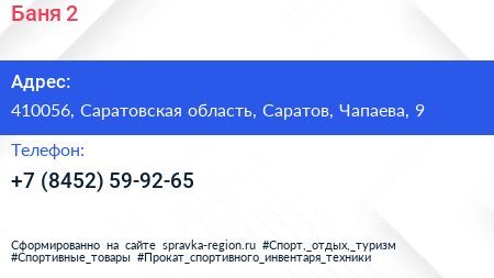 Баня №2 по адресу 410056, Саратовская область, Саратов, Чапаева, 9 в дальнейшем Организация, размещена в следующих категориях: