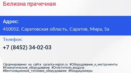 Белизна, прачечная по адресу 410052, Саратовская область, Саратов, Мира, 5а в дальнейшем Организация, размещена в следующих категориях: