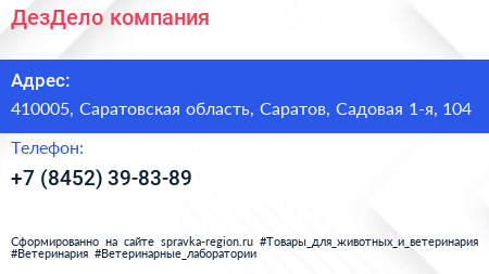ДезДело, компания по адресу 410005, Саратовская область, Саратов, Садовая 1-я, 104 в дальнейшем Организация, размещена в следующих категориях: