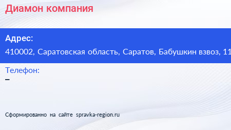 Диамон, компания по адресу 410002, Саратовская область, Саратов, Бабушкин взвоз, 11 в дальнейшем Организация, размещена в следующих категориях:
