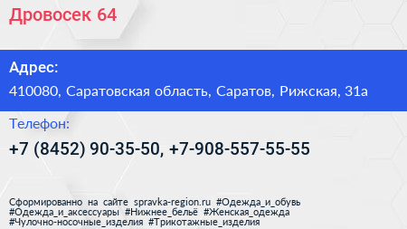 Дровосек 64 по адресу 410080, Саратовская область, Саратов, Рижская, 31а в дальнейшем Организация, размещена в следующих категориях: