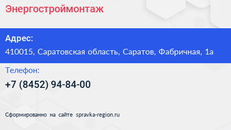 Энергостроймонтаж по адресу 410015, Саратовская область, Саратов, Фабричная, 1а в дальнейшем Организация, размещена в следующих категориях: