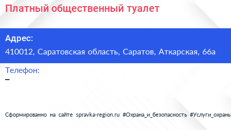 Платный общественный туалет по адресу 410012, Саратовская область, Саратов, Аткарская, 66а в дальнейшем Организация, размещена в следующих категориях: