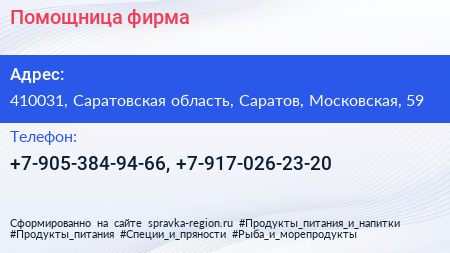 Помощница, фирма по адресу 410031, Саратовская область, Саратов, Московская, 59 в дальнейшем Организация, размещена в следующих категориях: