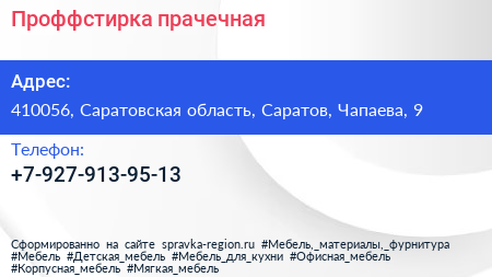 Проффстирка, прачечная по адресу 410056, Саратовская область, Саратов, Чапаева, 9 в дальнейшем Организация, размещена в следующих категориях: