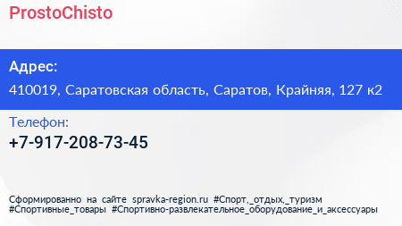 ProstoChisto по адресу 410019, Саратовская область, Саратов, Крайняя, 127 к2 в дальнейшем Организация, размещена в следующих категориях:
