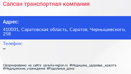Сапсан, транспортная компания по адресу 410031, Саратовская область, Саратов, Чернышевского, 258 в дальнейшем Организация, размещена в следующих категориях: