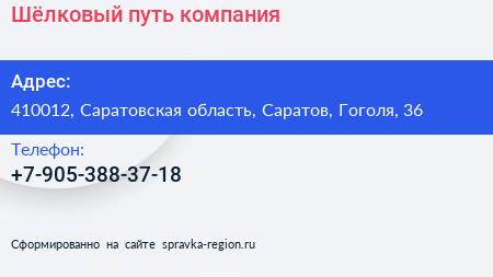 Шёлковый путь, компания по адресу 410012, Саратовская область, Саратов, Гоголя, 36 в дальнейшем Организация, размещена в следующих категориях: