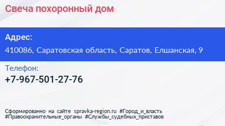 Свеча, похоронный дом по адресу 410086, Саратовская область, Саратов, Елшанская, 9 в дальнейшем Организация, размещена в следующих категориях: