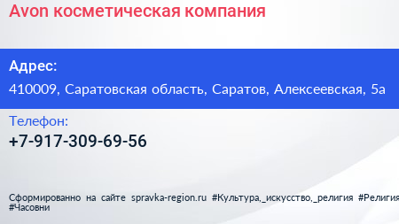 Avon, косметическая компания по адресу 410009, Саратовская область, Саратов, Алексеевская, 5а в дальнейшем Организация, размещена в следующих категориях: