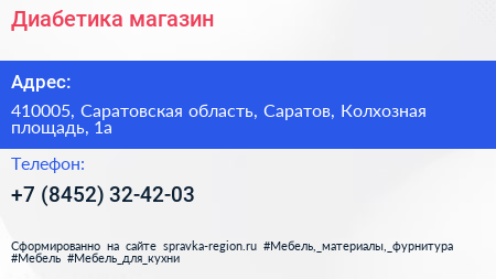 Диабетика, магазин по адресу 410005, Саратовская область, Саратов, Колхозная площадь, 1а в дальнейшем Организация, размещена в следующих категориях: