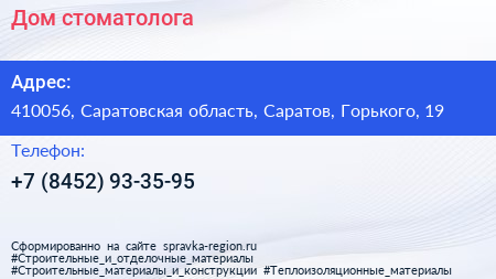 Дом стоматолога по адресу 410056, Саратовская область, Саратов, Горького, 19 в дальнейшем Организация, размещена в следующих категориях: