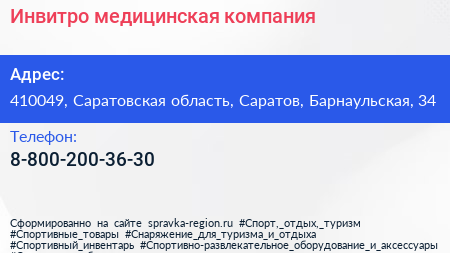 Инвитро, медицинская компания по адресу 410049, Саратовская область, Саратов, Барнаульская, 34 в дальнейшем Организация, размещена в следующих категориях: