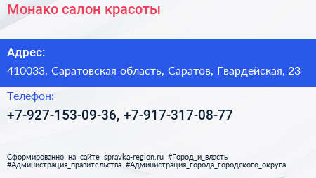 Монако, салон красоты по адресу 410033, Саратовская область, Саратов, Гвардейская, 23 в дальнейшем Организация, размещена в следующих категориях:
