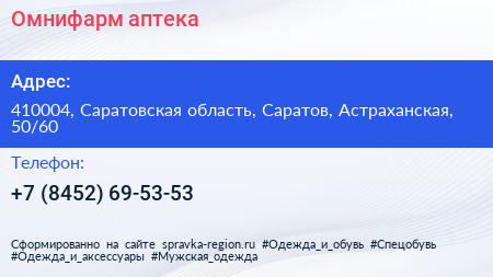 Омнифарм, аптека по адресу 410004, Саратовская область, Саратов, Астраханская, 50/60 в дальнейшем Организация, размещена в следующих категориях: