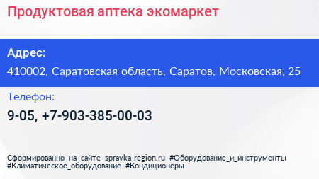 Продуктовая аптека, экомаркет по адресу 410002, Саратовская область, Саратов, Московская, 25 в дальнейшем Организация, размещена в следующих категориях: