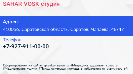 SAHAR & VOSK, студия по адресу 410056, Саратовская область, Саратов, Чапаева, 48/47 в дальнейшем Организация, размещена в следующих категориях: