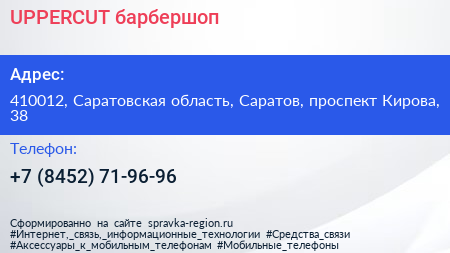 UPPERCUT, барбершоп по адресу 410012, Саратовская область, Саратов, проспект Кирова, 38 в дальнейшем Организация, размещена в следующих категориях:
