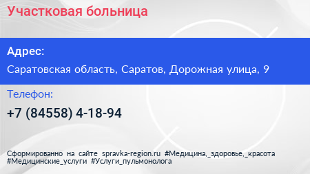 Участковая больница по адресу Саратовская область, Саратов, Дорожная улица, 9 в дальнейшем Организация, размещена в следующих категориях:
