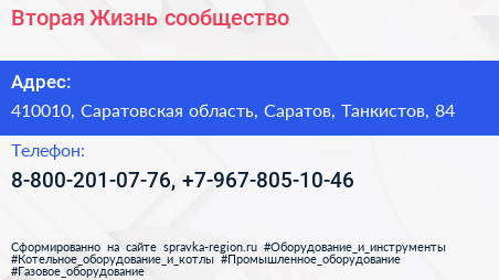 Вторая Жизнь, сообщество по адресу 410010, Саратовская область, Саратов, Танкистов, 84 в дальнейшем Организация, размещена в следующих категориях: